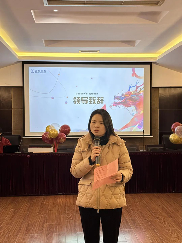 典礼伊始,四川九州酷游 ku游技术总经理李丽发表致辞,回顾2023年,第一时间对所有员工的辛勤付出表示衷心的感谢,风正潮平,自当扬帆破浪;任重道远,更需策马扬鞭。2024,新的ICT行业生态蓝图已经铺就,更需每一位员工在人才培养上勠力同心、再攀高峰!