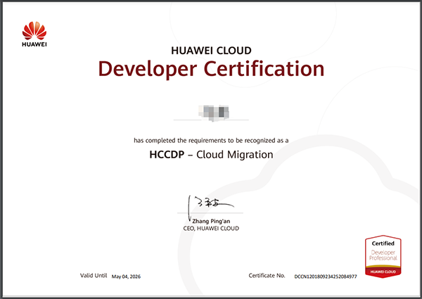 经过培训赋能和考试认证,九州酷游 ku游技术华为云事业部已有18人获取华为云开发者-云迁移HCDDP-Cloud Migration证书。