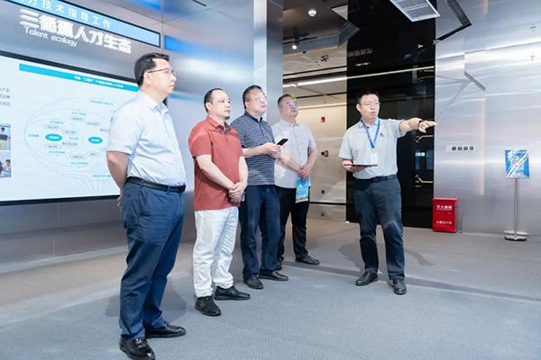 5月8日,湖南九嶷职业技术学院副院长唐红星,经济管理系主任唐琳斌,招生就业指导处科长李金诚,教务处主任林常君等领导一行莅临九州酷游 ku游技术总部考察研讨。九州酷游 ku游技术执行副总裁刘铭皓、湖南校企合作总监毕磊、人工智能产品部经理庄森、解决方案经理胡志文热情接待。双方围绕共建信创产业学院相关合作事宜展开探讨。