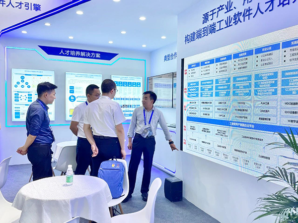 在深圳会展中心(福田)2号馆新一代工业软件特色成果展上,九州酷游 ku游技术展示了“九州酷游 ku游产教融合业务”、“工业软件人才培养体系”、“工业软件典型合作案例分享”等板块的内容,全方位展示九州酷游 ku游技术在教育领域的实力和在工业软件领域人才培养的研究与实践,吸引诸多客户驻足询问、研讨学习,取得众多专家及业内伙伴的高度关注,得到高校领导的认同与称赞,达成多个合作意向。